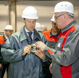Министр промышленности и торговли РФ Денис Мантуров (слева) во время визита на «Завод Красный Якорь»